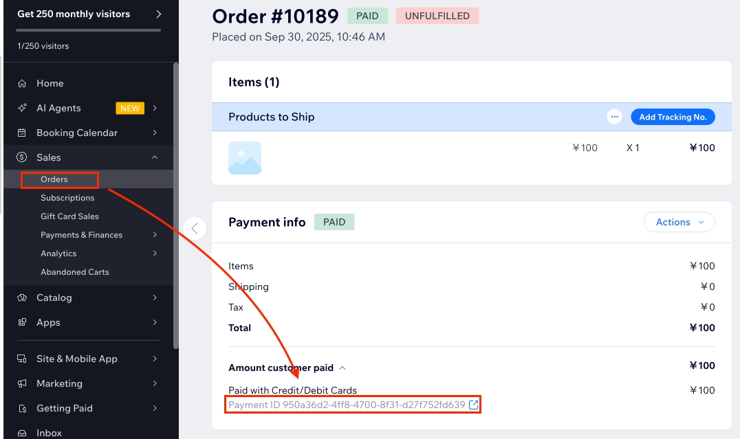 Step 1: Find the Payment ID Number in Wix