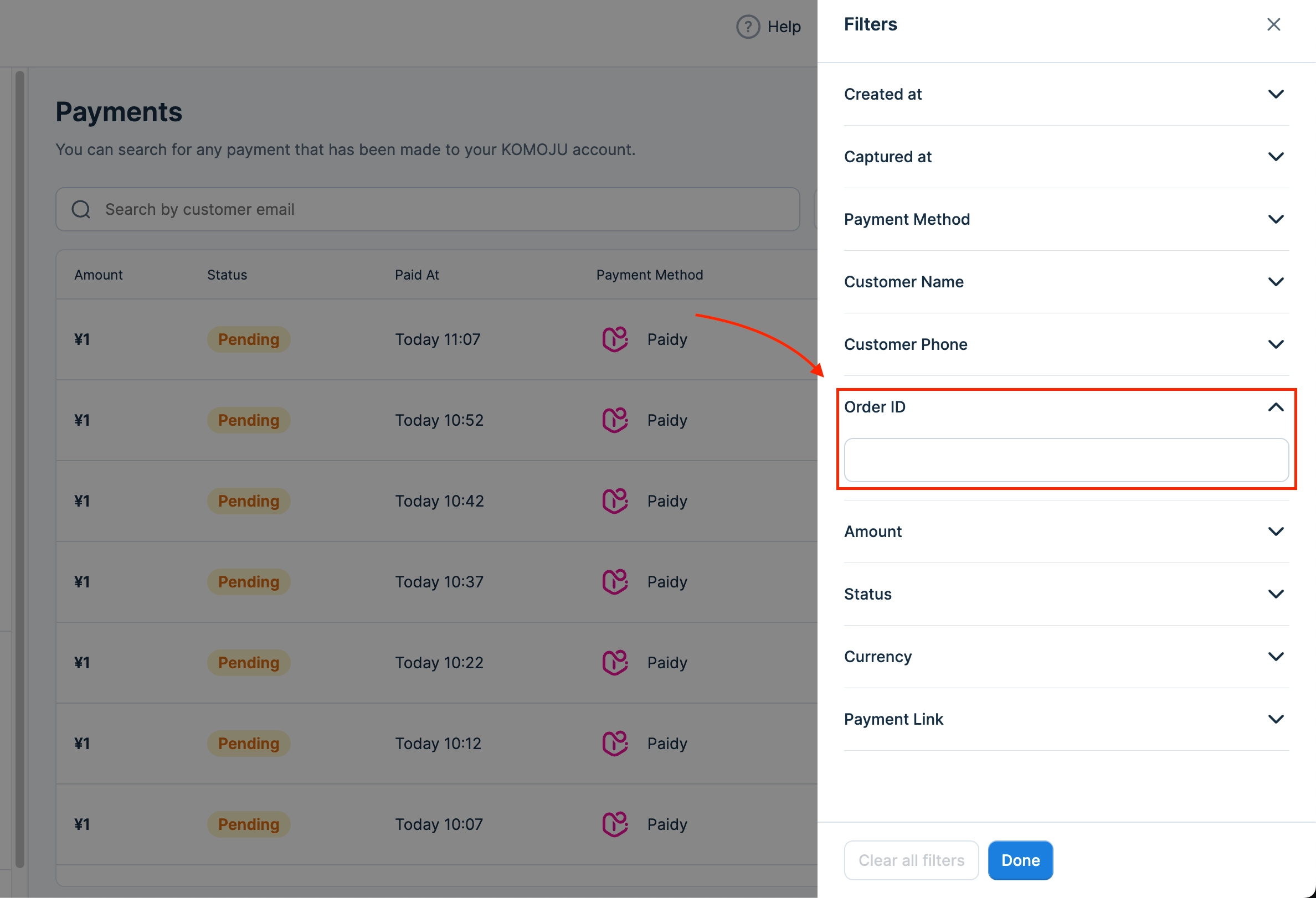 Step 2: Look Up the Transaction in KOMOJU